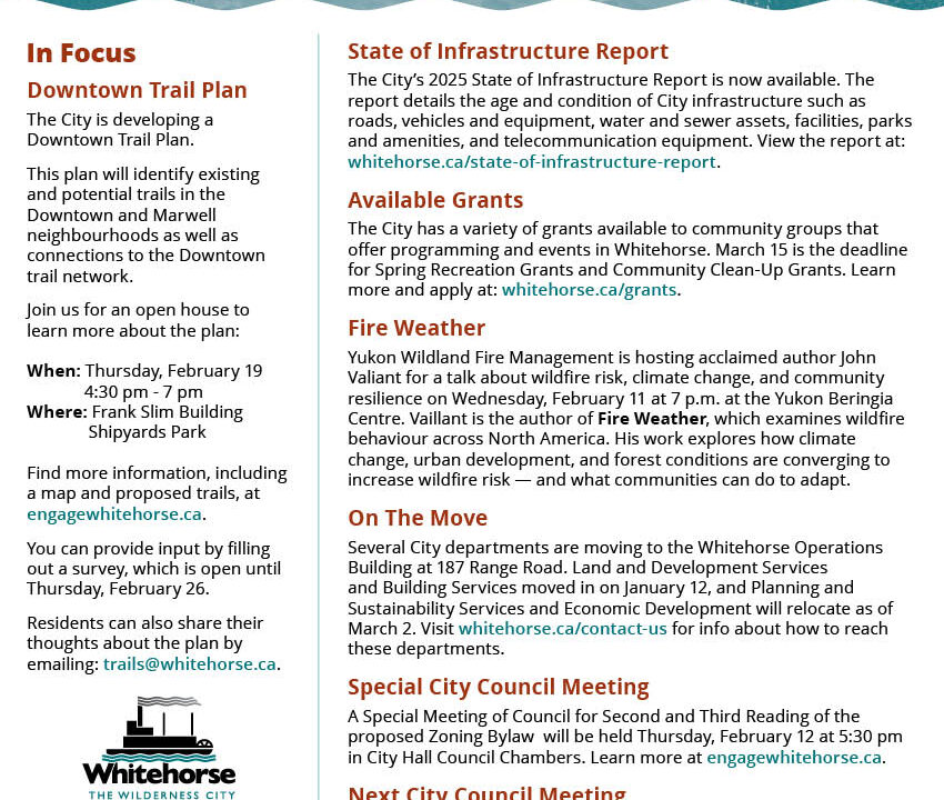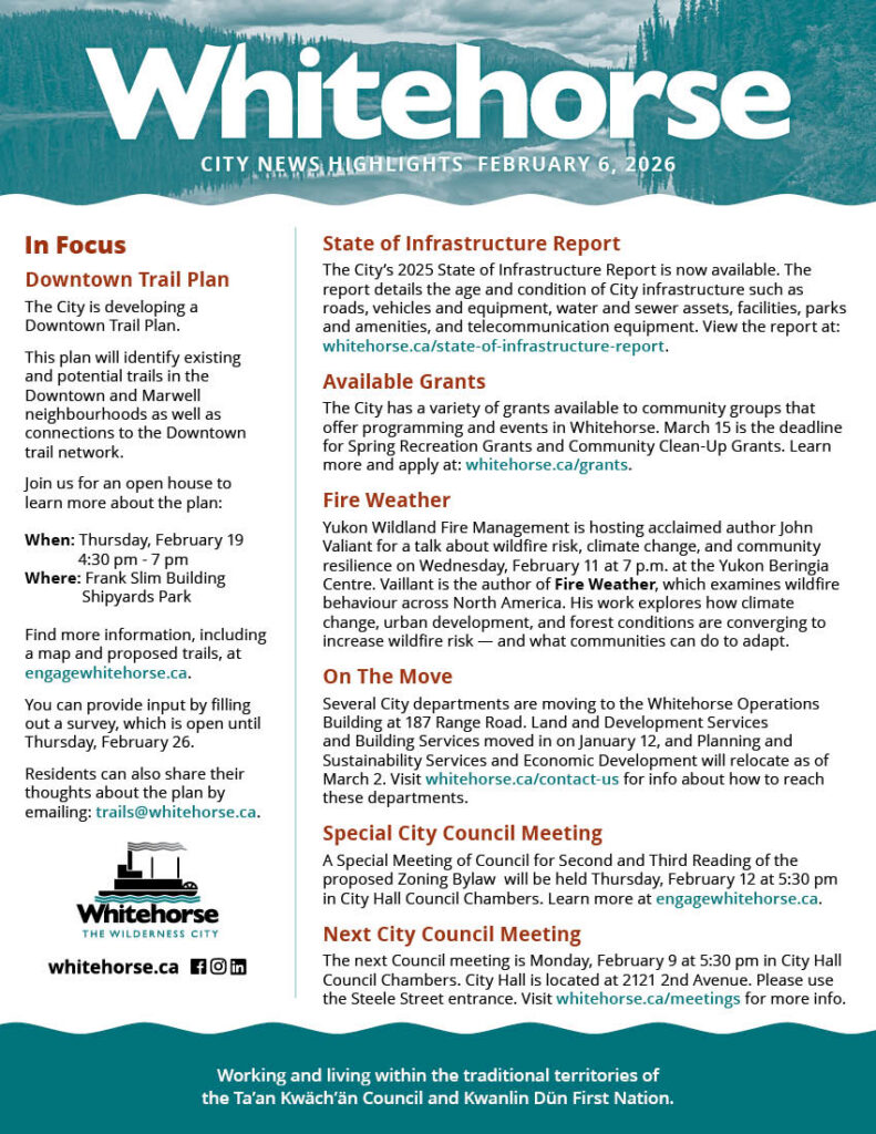 The City of Whitehorse has published its 2025 State of Infrastructure Report (SOIR). The SOIR details the state of the City’s broad range of infrastructure assets, […]