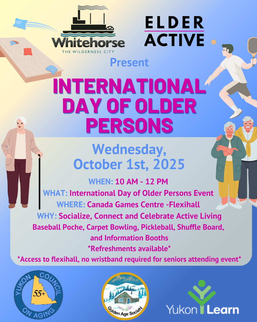 ElderActive and City of Whitehorse presents International Day of Older Persons at the Canada Games Centre, Wednesday October 1 from 10 AM - 12 PM. All […]