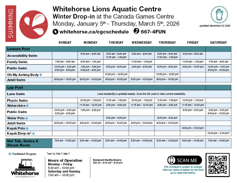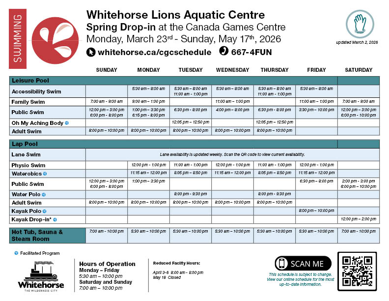 Whether you’re diving into fitness or floating through fun, the Whitehorse Lions Aquatic Centre offers something for everyone. Access all our public swim times with a daily admission or by swiping your CGC membership card.