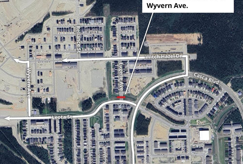 - A Cul-de-sac Pilot Project will be introduced on Eugene Avenue in Whistle Bend to prevent shortcutting by drivers. A temporary road closure at Leota Street will be piloted starting August 7 until the end of September. Eugene Avenue is a local road which is designed to allow residents to access their homes with minimal through traffic. Many drivers shortcut through Eugene Avenue, causing safety concerns for residents. Active transportation users will be able to pass through and drivers are encouraged to use Witch Hazel Drive.