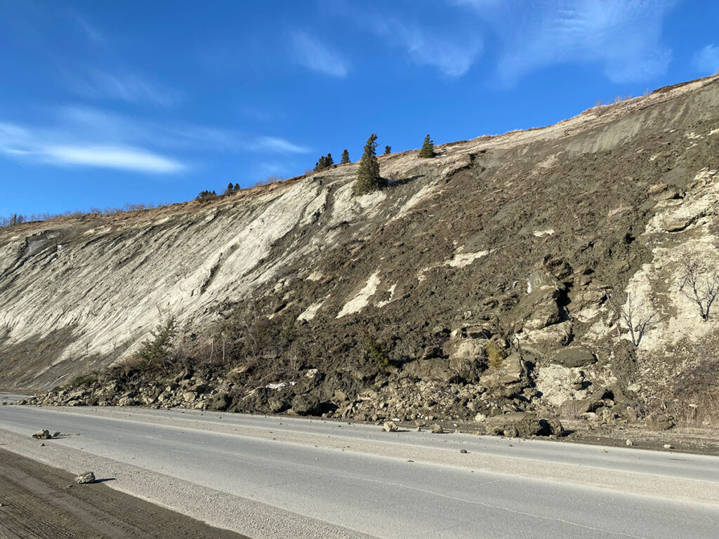 New tension cracks have developed immediately south of the April 8, 2023 slide and the likelihood of another slide in this area of similar or larger size is high.